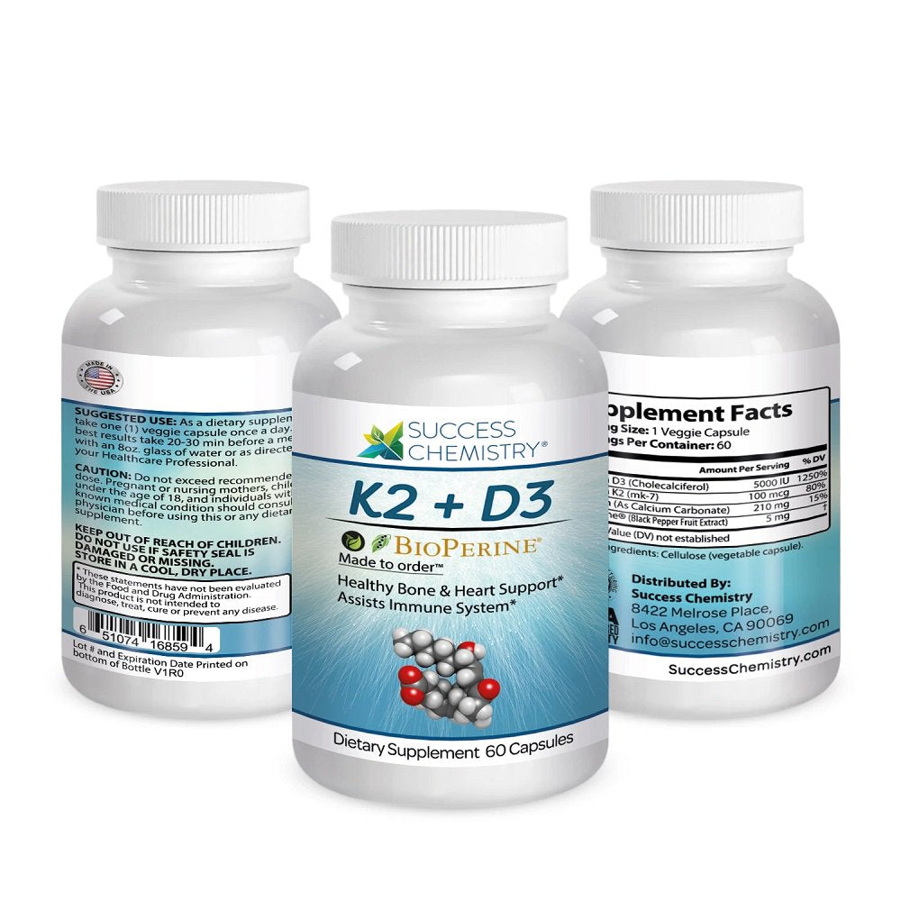 - ONLY THE BEST. Just one small, easy-to-swallow veggie capsule of K2+D3 per day provides helping you support strong bones and healthy Heart.