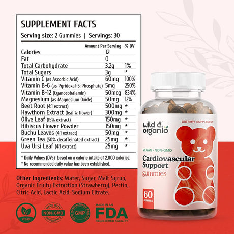 Wild & Organic Blood Pressure Support Gummies with Beetroot for Heart Health, 60 Chews
