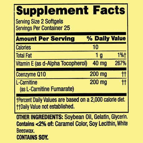 Spring Valley Coq10 plus L-Carnitine Heart Health Dietary Supplement Softgels, 100 Mg, 50 Count