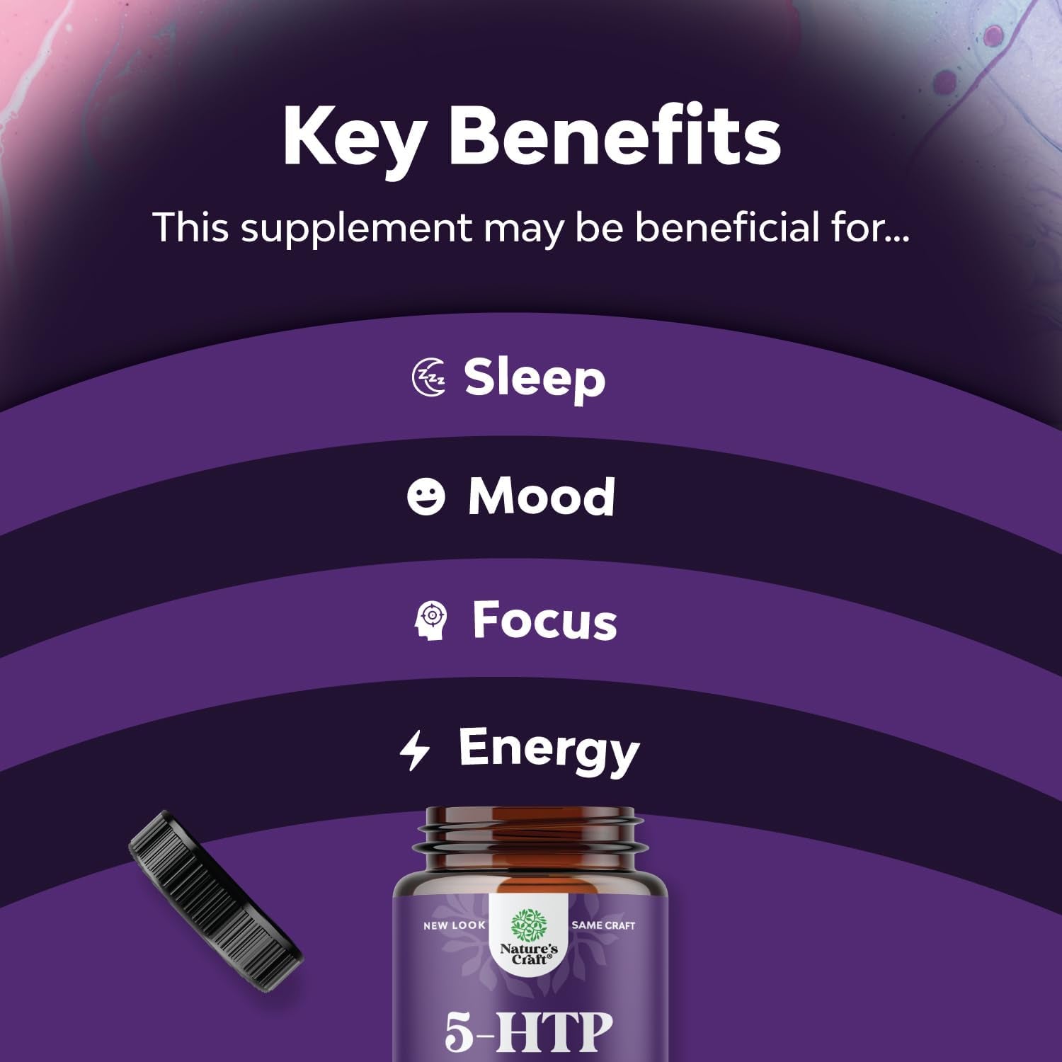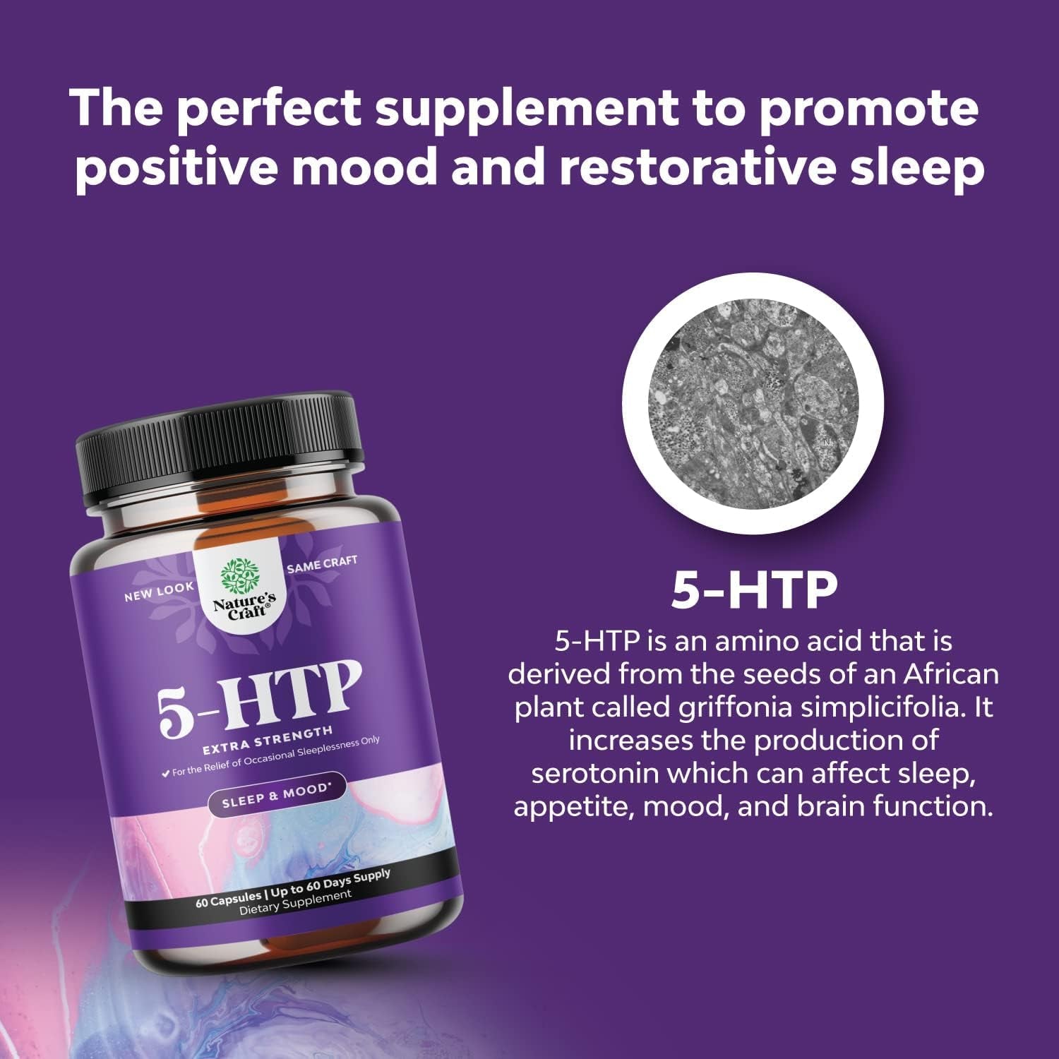 • Mood Supplement - 5-HTP is a form of tryptophan that acts as a mood boost and sleep supplement by naturally increasing the body’s production of mood enhancers so you can feel better day and night