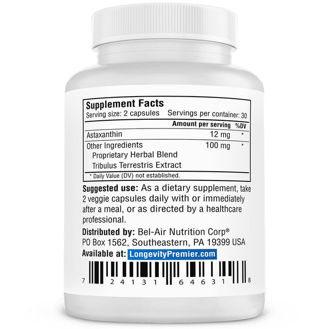 - Key Ingredients: Astaxanthin, Tribulus Terrestris Extract.