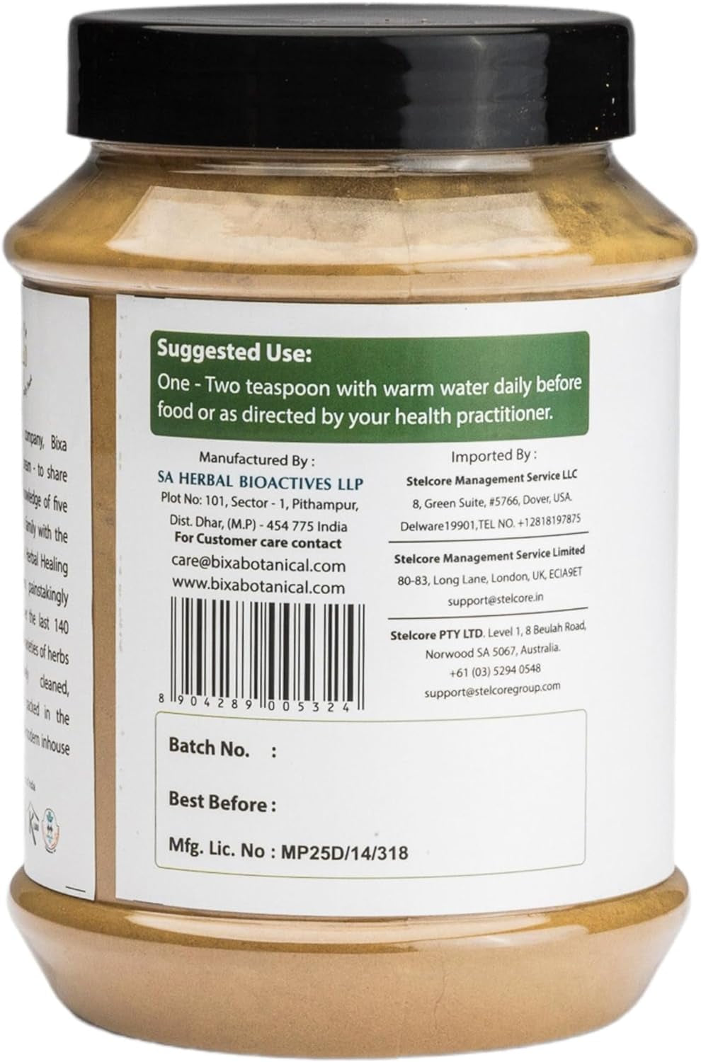 | Manufacturer | S A Herbal Bioactives LLP |