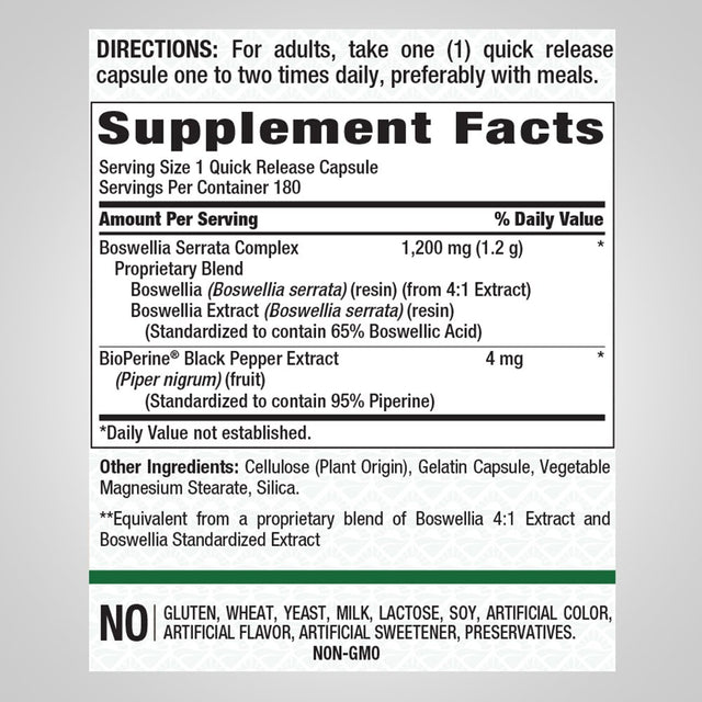 | Product Name | Boswellia Serrata 1200mg | 180 Extract Capsules | Herbal Supplement | With Bioperine | By Piping Rock |