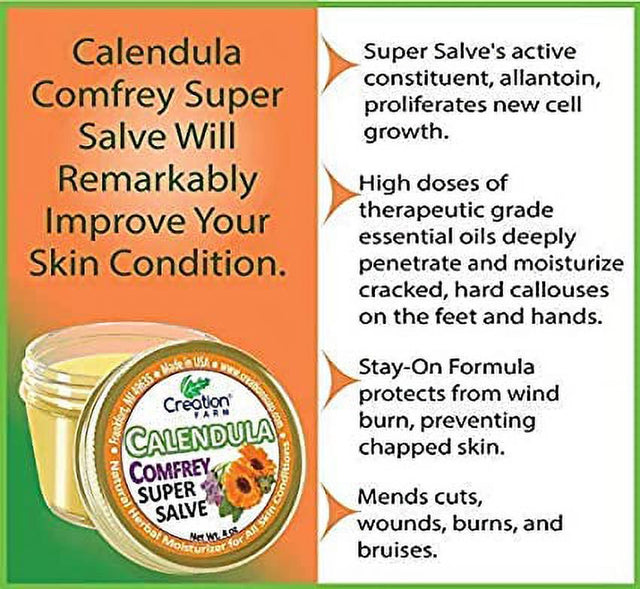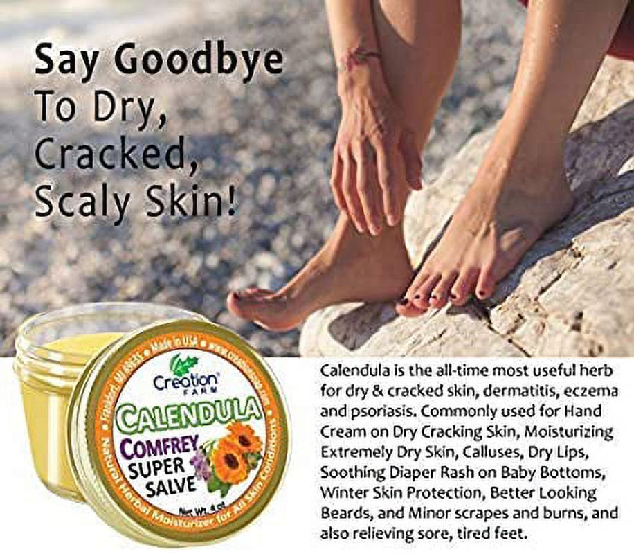 Calendula Comfrey Salve 2 Pack 4 Oz Jars, Herbal Skin Rash Ointment, Wound Treatment by Creation Farm - Pack Of 2 - 4 Oz is backordered and will ship as soon as it is back in stock.