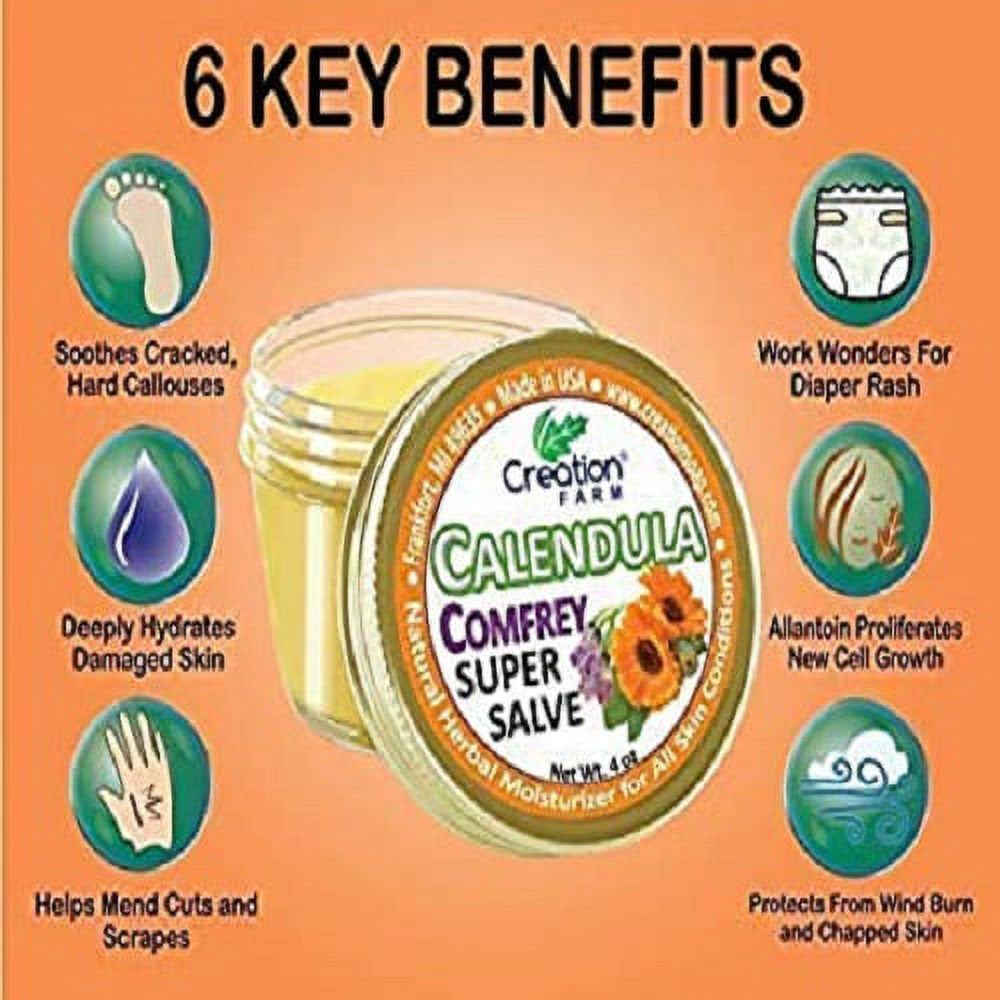 Calendula Comfrey Salve 2 Pack 4 Oz Jars, Herbal Skin Rash Ointment, Wound Treatment by Creation Farm