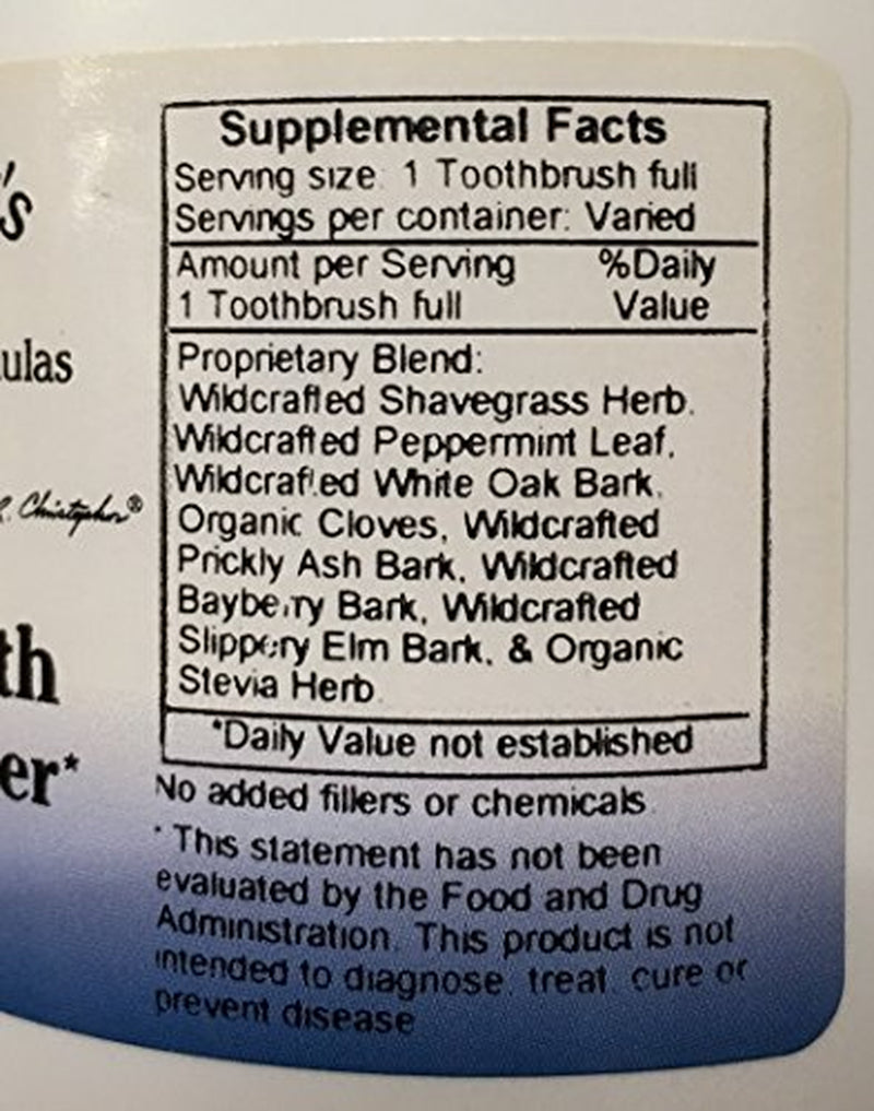 Christopher'S Original Formulas Herbal Tooth and Gum Powder 2 Ounce (Pack of 1) is backordered and will ship as soon as it is back in stock.
