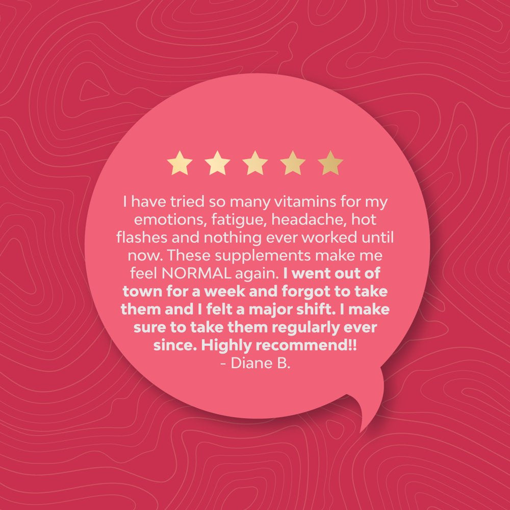 Hormonal balance for women is crucial in all stages of aging which is why we added herbs like chaste tree berry and black cohosh for menopause relief for women. Try our cooling formula with B2 B6 and D3 menopause vitamins for women and a black cohosh hot flash relief complex with red clover to help provide night sweats relief for women. Our women's hormone balance supplement is great for managing many common menopause concerns like poor mood and irritability thanks to superstar herbal ingredients.