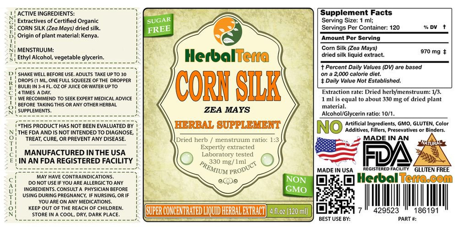 Corn Silk (Zea Mays) Tincture, Organic Dried Silk Liquid Extract (Herbal Terra, USA) 2 Oz - Alcohol-Based / 2 Oz is backordered and will ship as soon as it is back in stock.