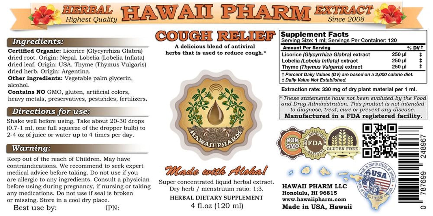 | Product Name | Cough Care Tincture, Licorice (Glycyrrhiza Glabra) Dried Root, Lobelia (Lobelia Inflata) Dried Leaf, Thyme (Thymus Vulgaris) Dried Herb Liquid Extract, Herbal Supplement 4x4 oz |