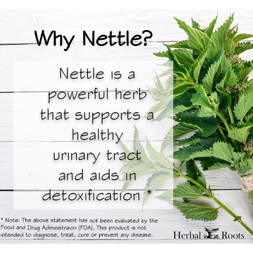 - WHY NETTLE LEAF? - Nettle leaf promotes a healthy urinary tract and aids in detoxification*
