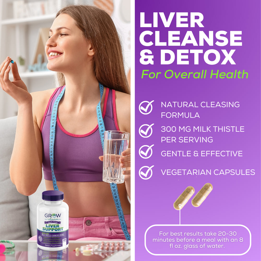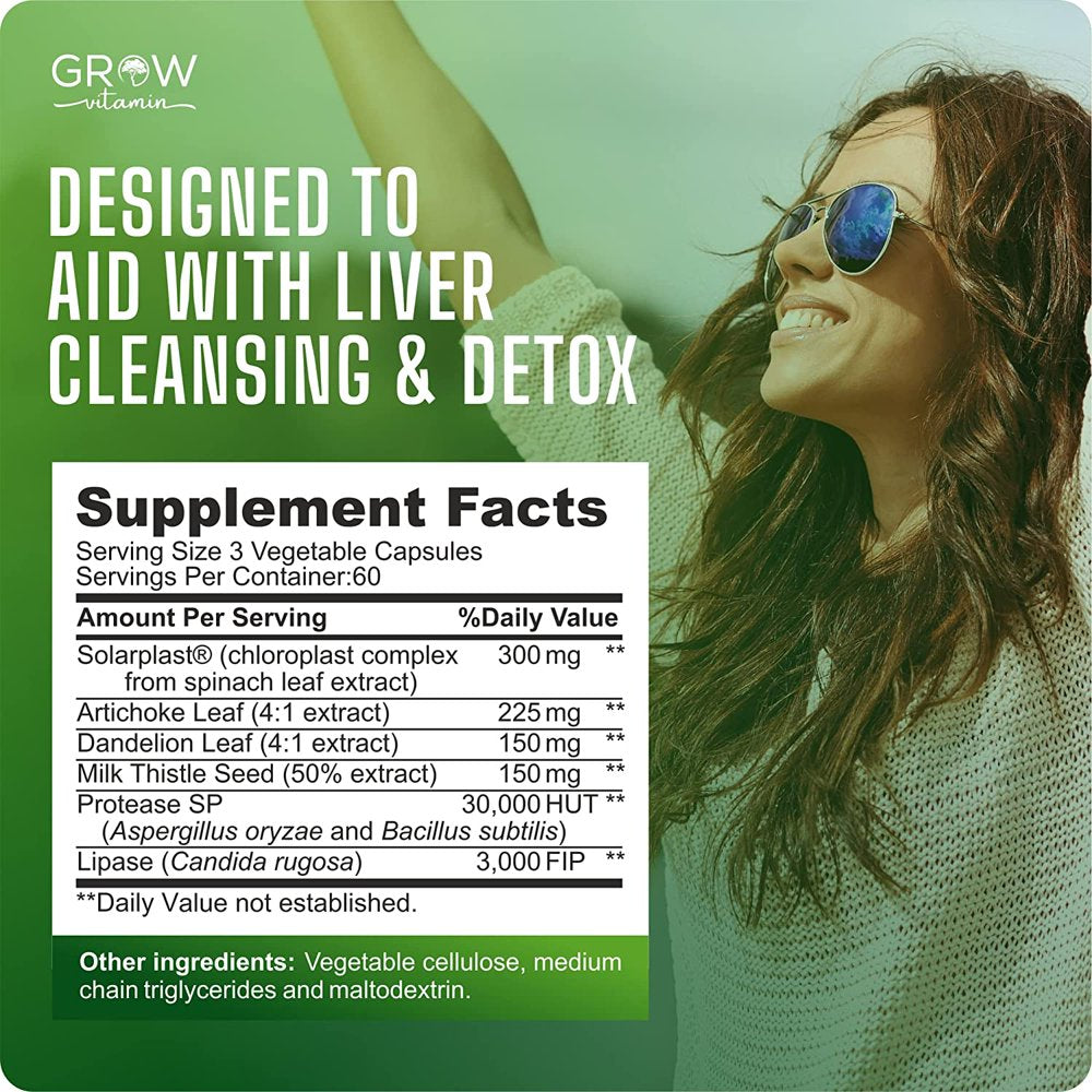 Grow Vitamin Liver Cleanse Detox & Repair Formula - Herbal Liver Support Supplement with Milk Thistle Dandelion Root Turmeric and Artichoke Extract for Liver Health