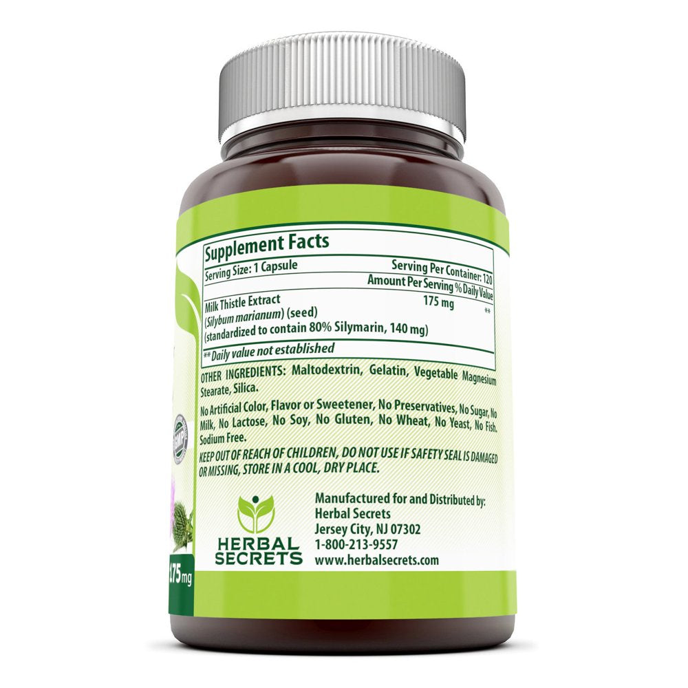 Herbal Secrets Milk Thistle - Standardized 175Mg Seed Extract Capsules with 80% Silymarin 120 Pills per Bottle