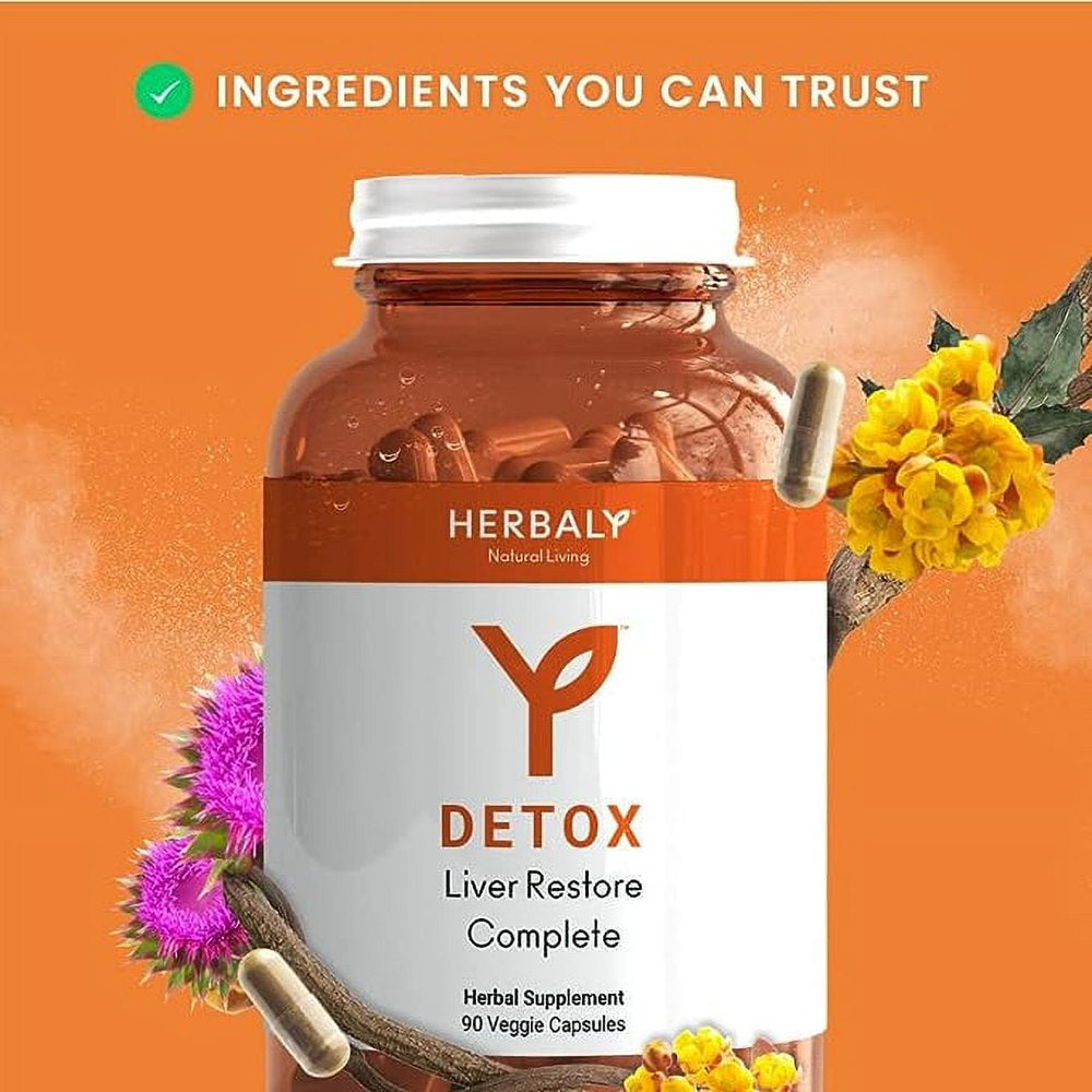HERBALY Detox Liver Restore Complete- 90 Veggie Capsules
