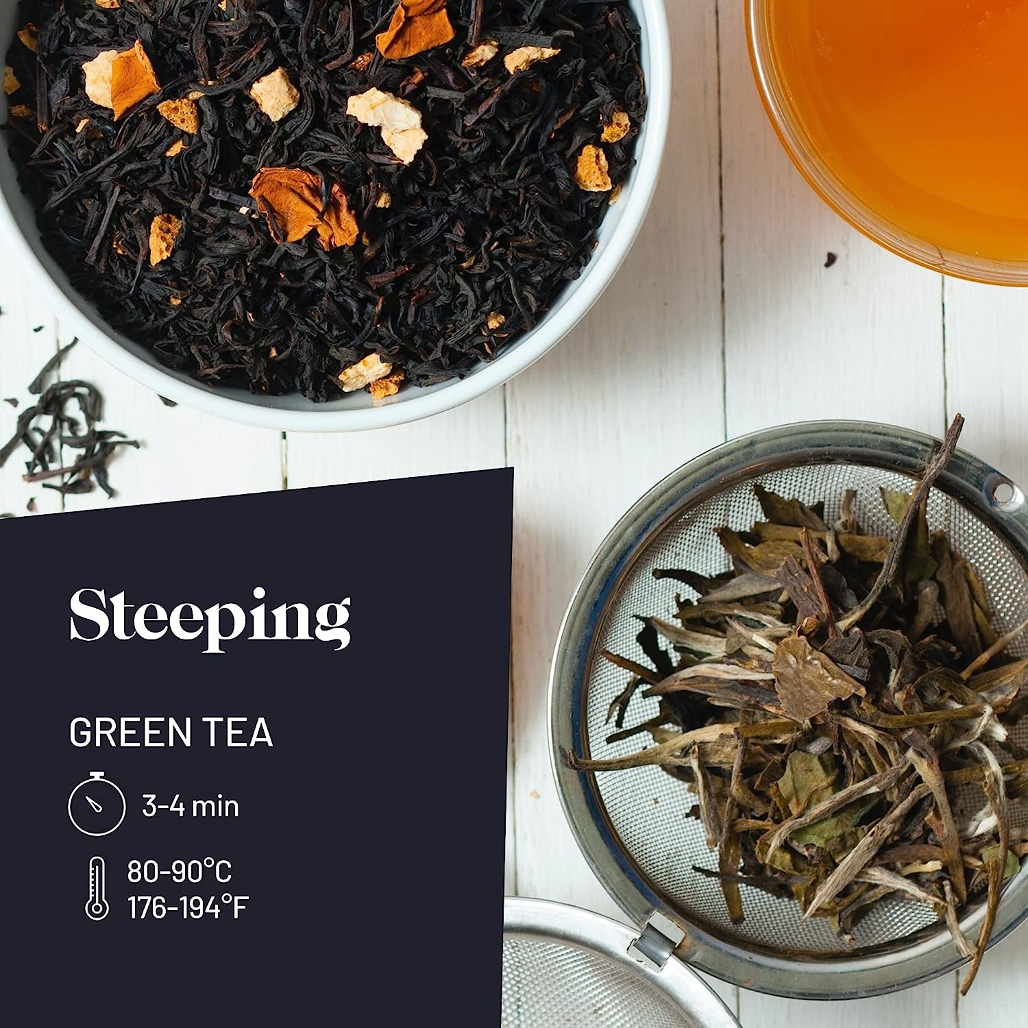- STEEPING RECOMMENDATIONS - These blends should be steeped for 3-4 minutes at 194 degrees Fahrenheit.