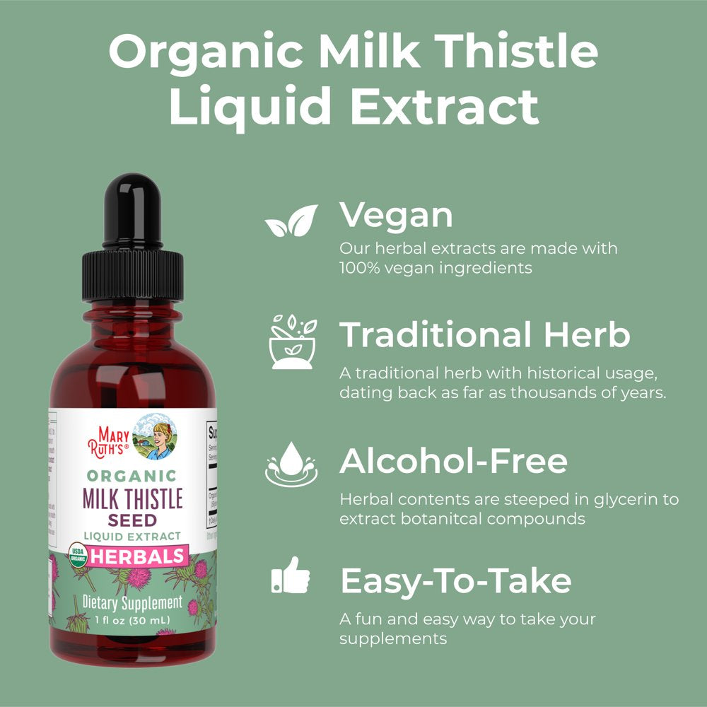 - Organic Milk Thistle Drops and Vegan Formula: Try our MaryRuth Organics Organic Milk Thistle Seed in an Easy-to-Take Tincture and Alcohol-Free Liquid Drops!
