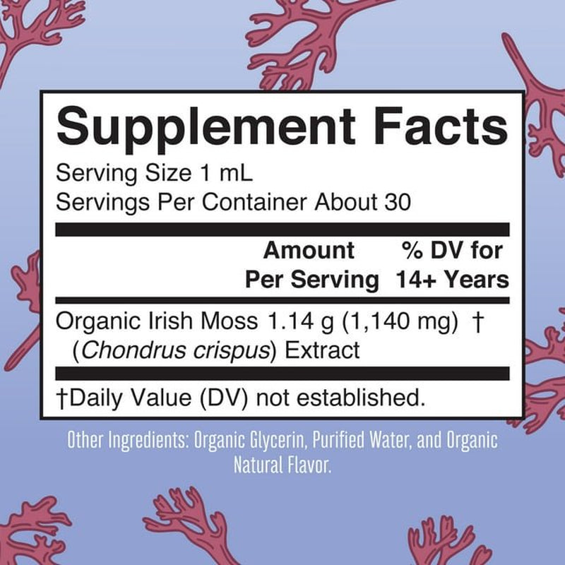- Vegan Formula: Organic Irish Moss (Chondrus crispus), Organic Glycerin, Purified Water, and Organic Masking Flavor.