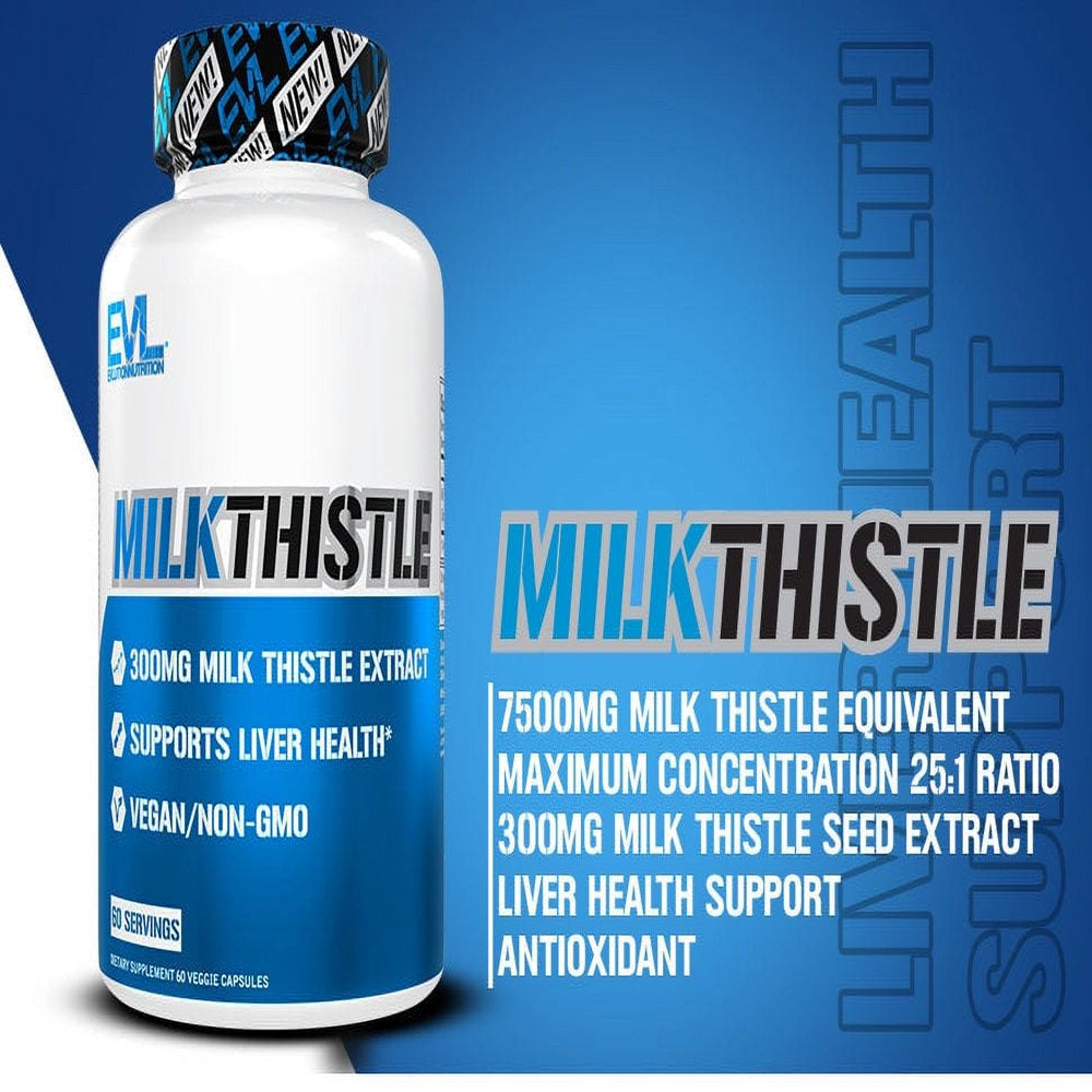 Milk Thistle Capsules Liver Cleanse & Detox 60Ct - EVL Nutrition Herbal Liver Support Supplement with Silymarin Milk Thistle Extract 300Mg
