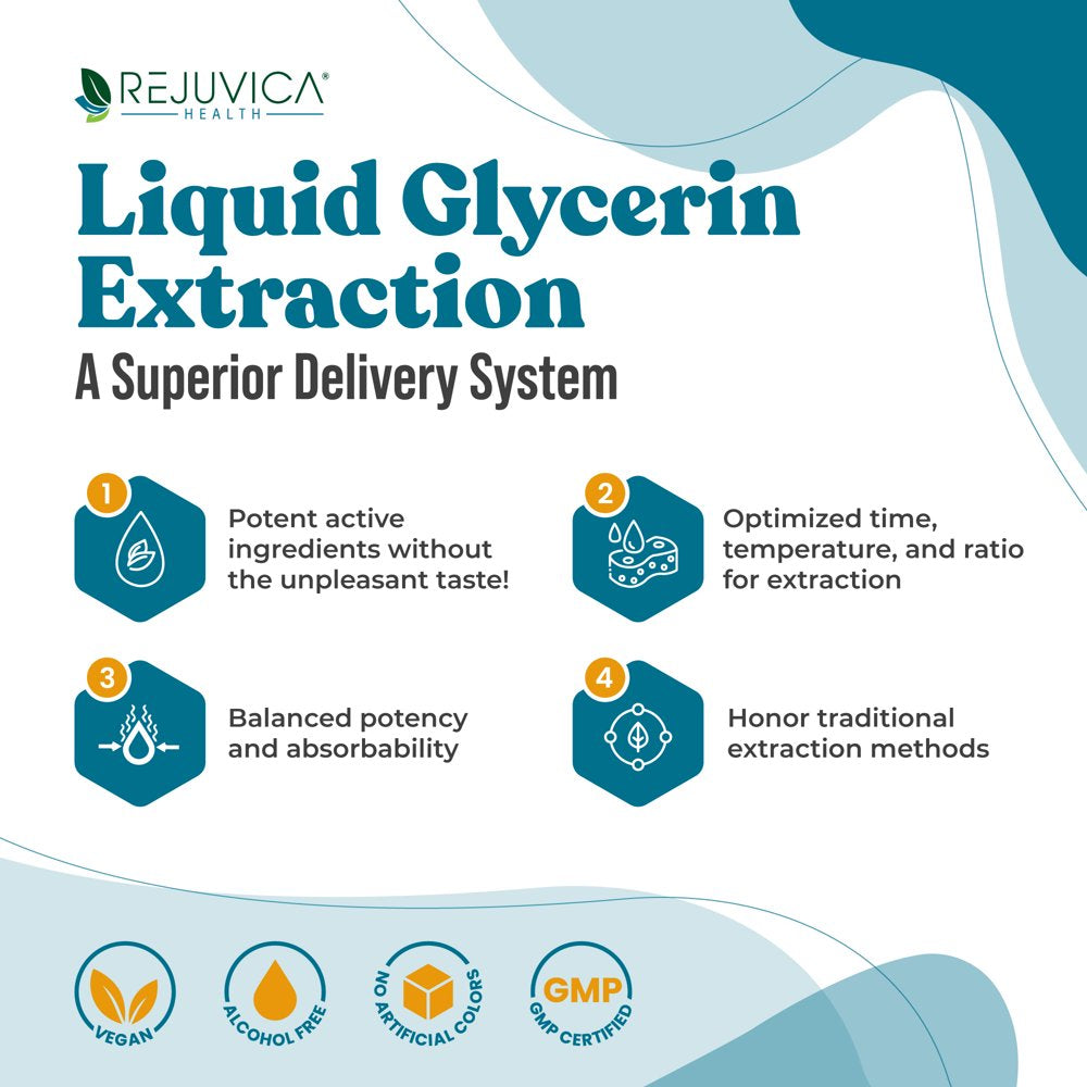 - Why use Glycerine? Glycerine has powerful properties that make it an excellent choice to preserve liquid herbal extracts. Rejuvica’s glycerine is made from palm fruit and has a slightly sweet taste that helps cover strong tasting herbs.