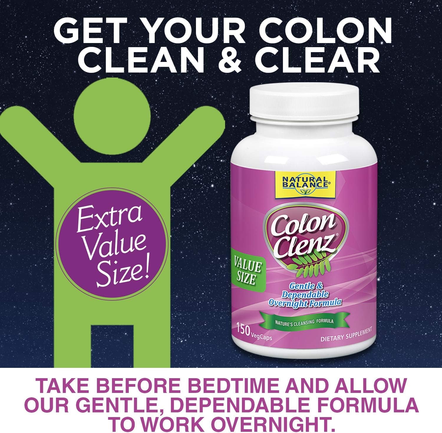 It makes sense: Regular elimination contributes to good health. In fact, experts often emphasize the importance of frequent digestive tract and colon cleansing. That’s why Natural Balance developed Colon Clenz, a special blend of detoxifying herbs designed to help support healthy digestion and eliminate waste and toxins that can build up in your colon over time. Our gentle formula draws from some of nature’s most reliable cleansing herbs: cascara sagrada, senna, Chinese rhubarb, black walnut, Oregon grape, slippery elm and more. Used before bed, Colon Clenz works overnight so you can begin the next day feeling clean, refreshed and energized.