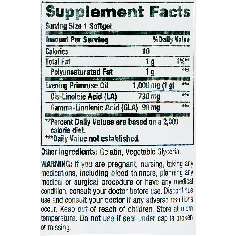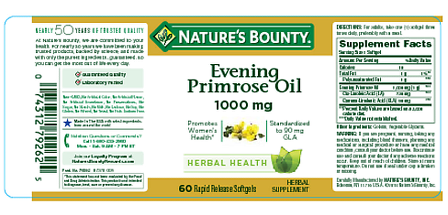 | Product Name | Nature's Bounty Evening Primrose Oil Softgels, Herbal Supplement, 1000 Mg, 60 Ct |