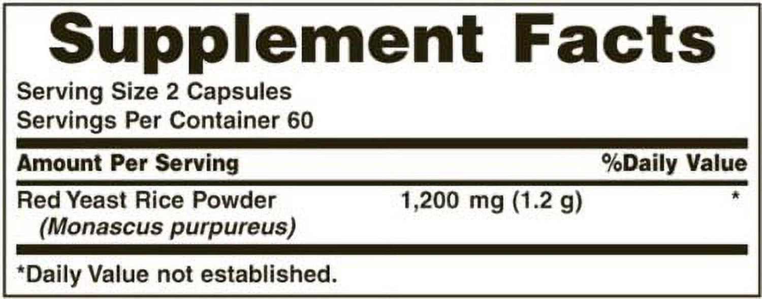 Nature's Bounty Red Yeast Rice Pills and Herbal Health Supplement, Dietary Additive, 600mg, 120 Capsules 120 Count (Pack of 1)