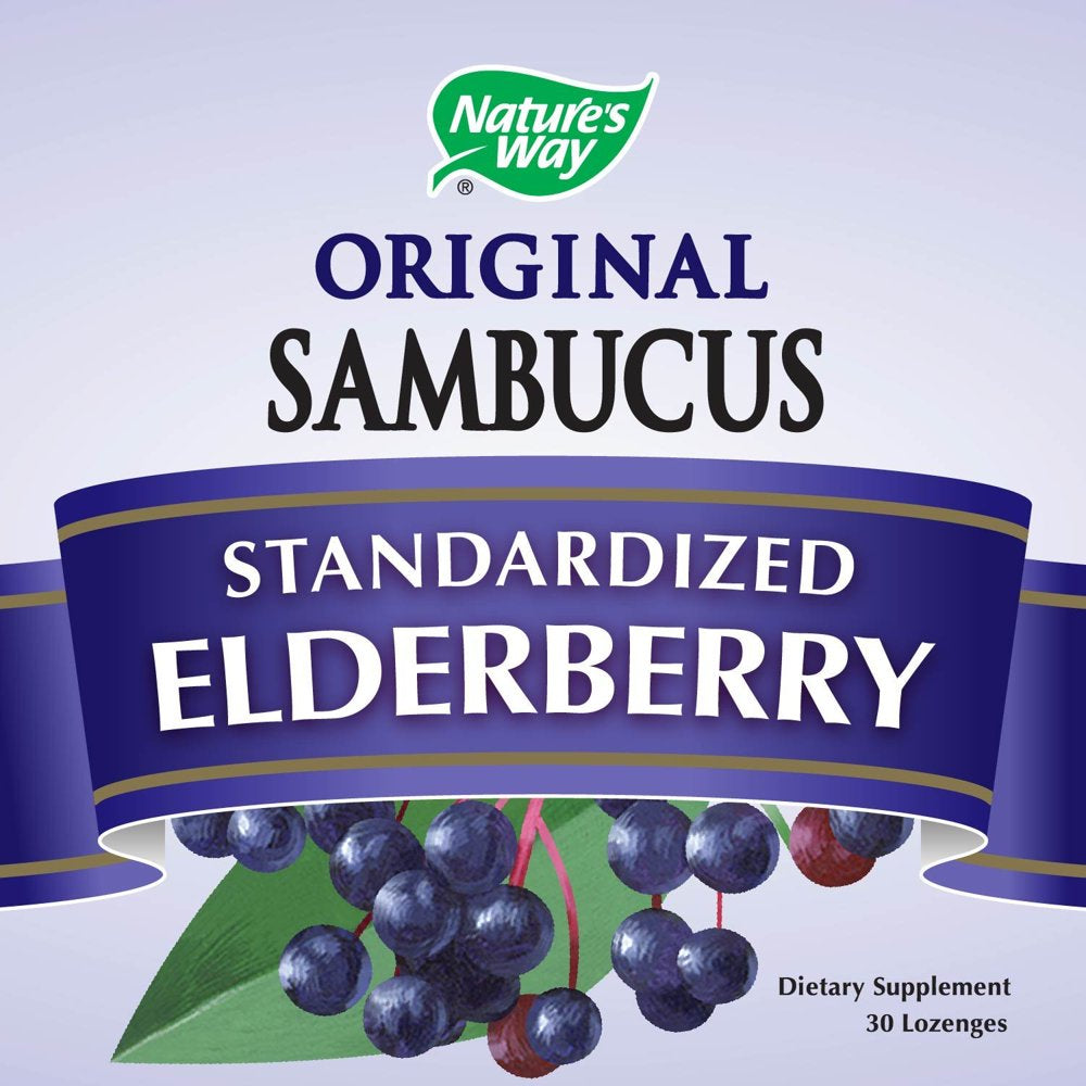 Nature's Way Original Sambucus Elderberry Lozenges, Herbal Supplements with Vitamin C, Gluten Free, Vegetarian, 30 Count