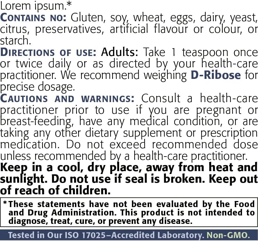 D-Ribose is a 5-carbon carbohydrate which serves as the currency for energy production within the mitochondria (cellular powerplants) of all cells.