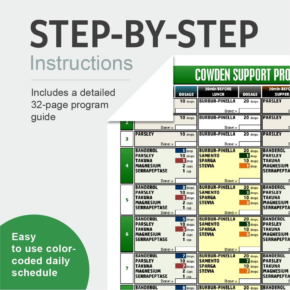 Take Control. Feel The Difference. This set makes following the detailed Cowden Support Protocol as easy as possible. Please note that the Program Schedule Guidebook is only included in month 1.