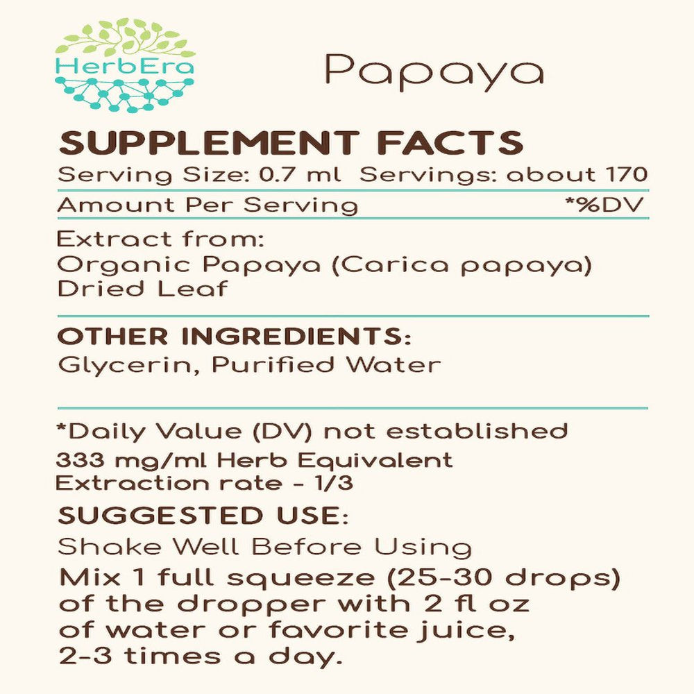 Papaya Alcohol-Free Herbal Extract Tincture, Super-Concentrated Organic Papaya (Carica Papaya) Dried Leaf 4 Oz