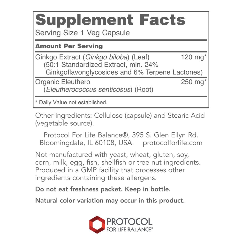 Protocol Ginkgo Biloba with Eleuthero Herbal Supplements - Circulation, Brain Support - 100 Veg Caps