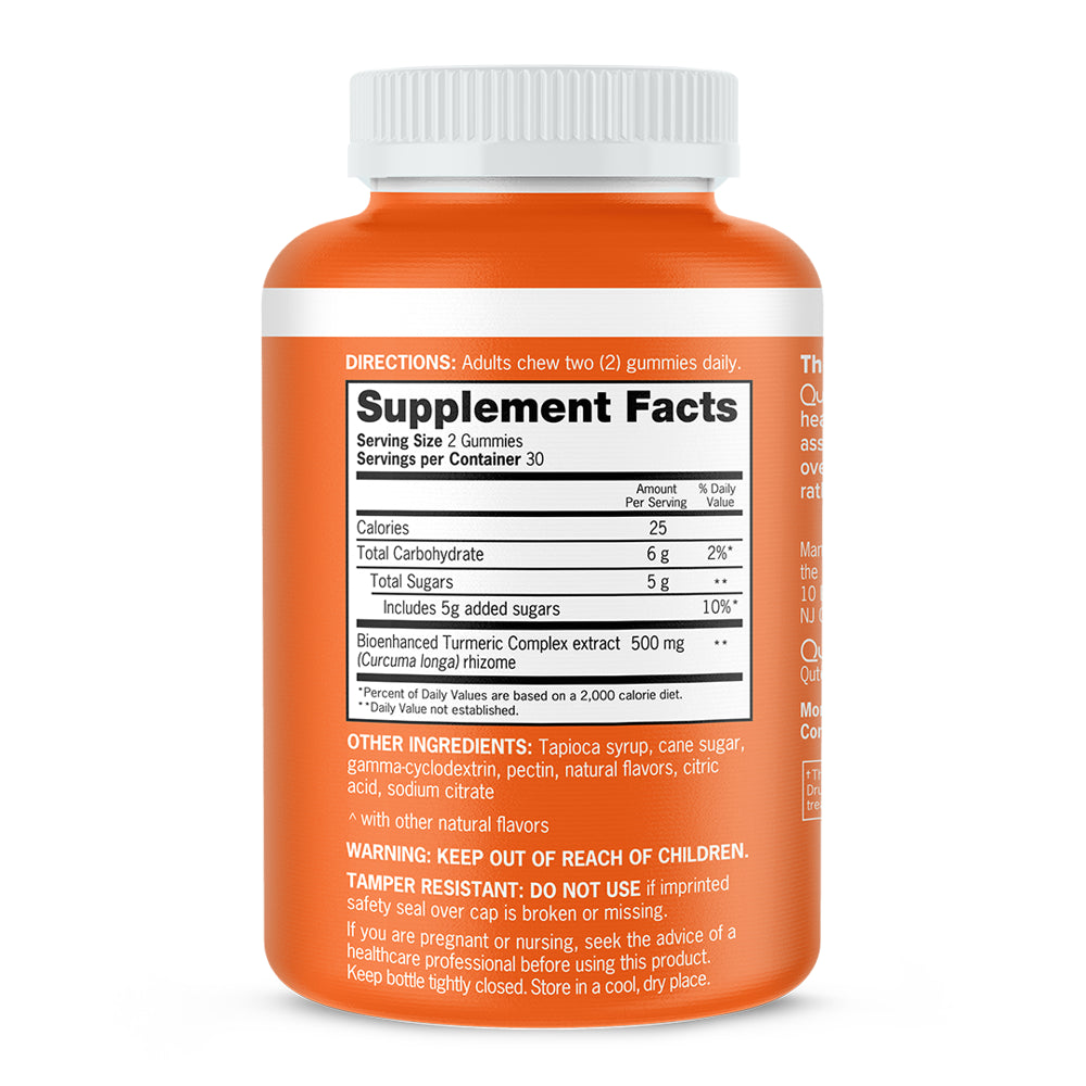 Qunol Turmeric Gummies are a delicious alternative to pills. Turmeric has a long tradition of helping soothe tired and overworked joints. It also helps support a healthy lifestyle. Vegan, No Artificial Colors and Gluten Free. A treat for your body and taste buds all in one!