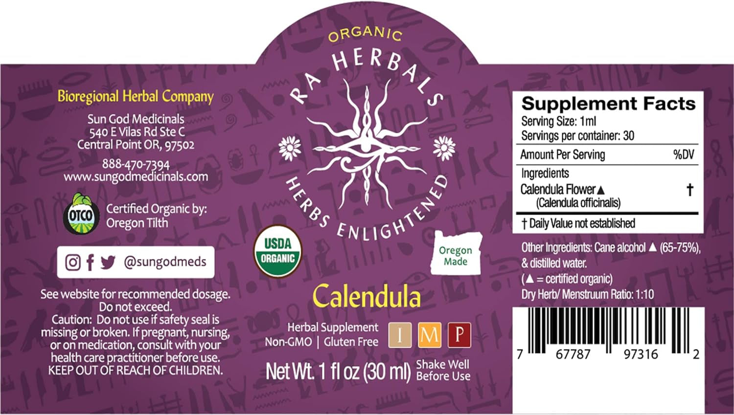 Ra Herbals Organic Calendula Liquid Extract - Detox Support - 1 Fl Oz