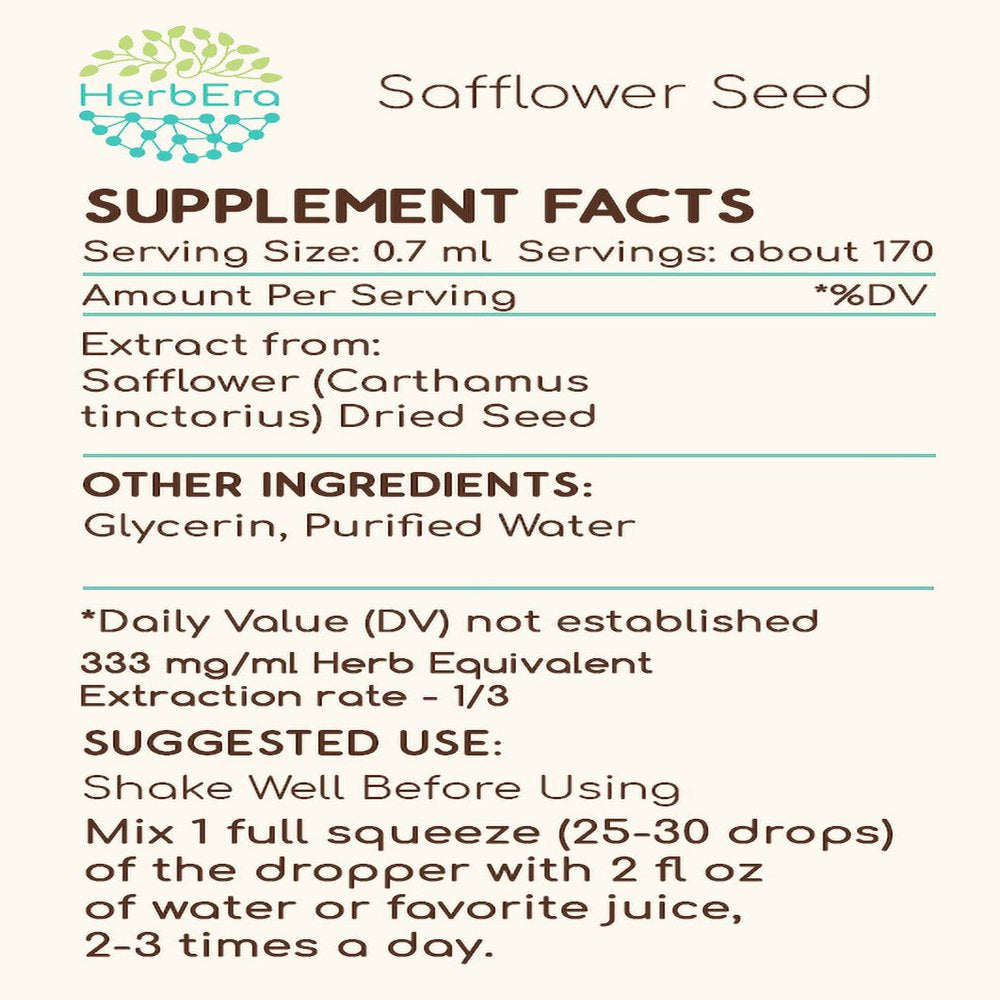 Safflower Seed Alcohol-Free Herbal Extract Tincture, Super-Concentrated Organic Safflower Seed (Hong Hua, Carthamus Tinctorius) Dried Seed 4 Oz - Alcohol-Free / 4 Fl Oz is backordered and will ship as soon as it is back in stock.