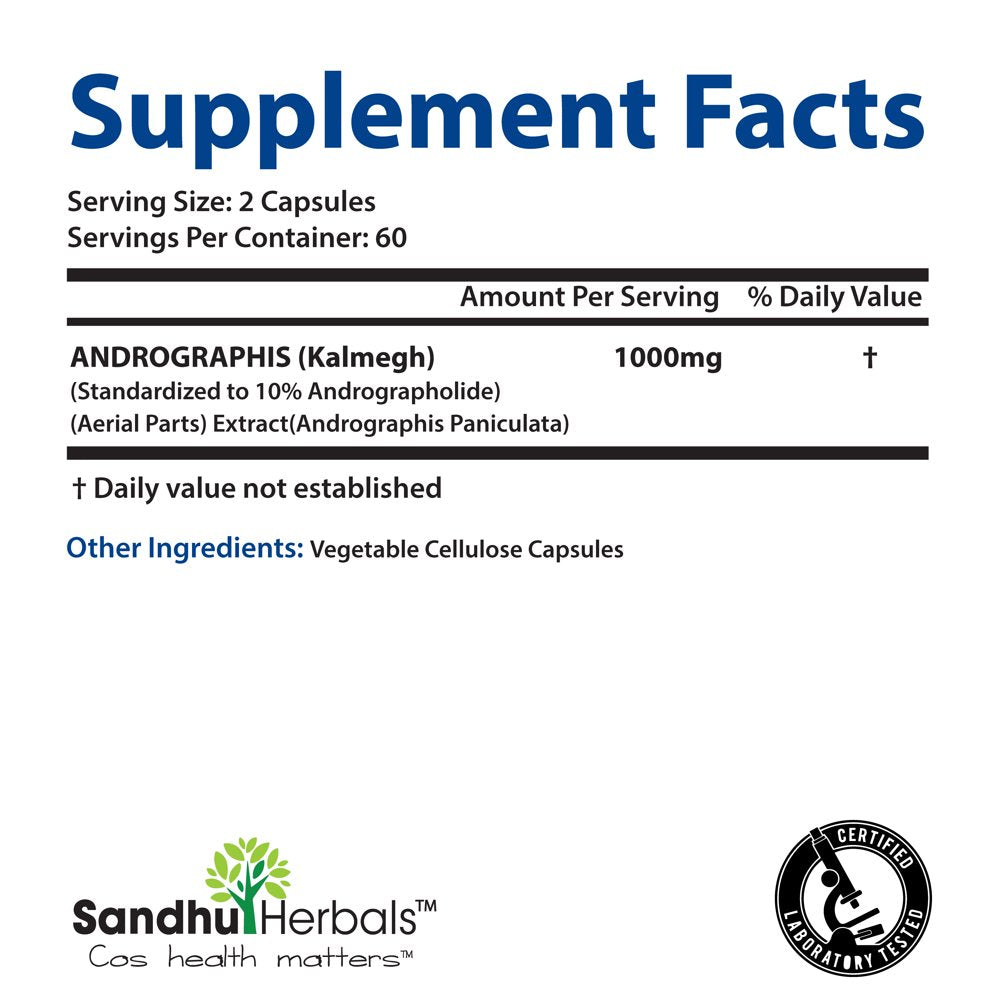 Sandhu Herbals Andrographis Paniculata Immunity Support Kalmegh Ayurvedic Herbal Vegetarian 120 Capsules