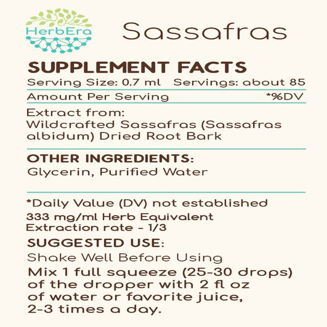 | Product Name | Sassafras Alcohol-FREE Herbal Extract Tincture, Super-Concentrated Organic Sassafras (Sassafras albidum) Dried Root Bark 2 oz |