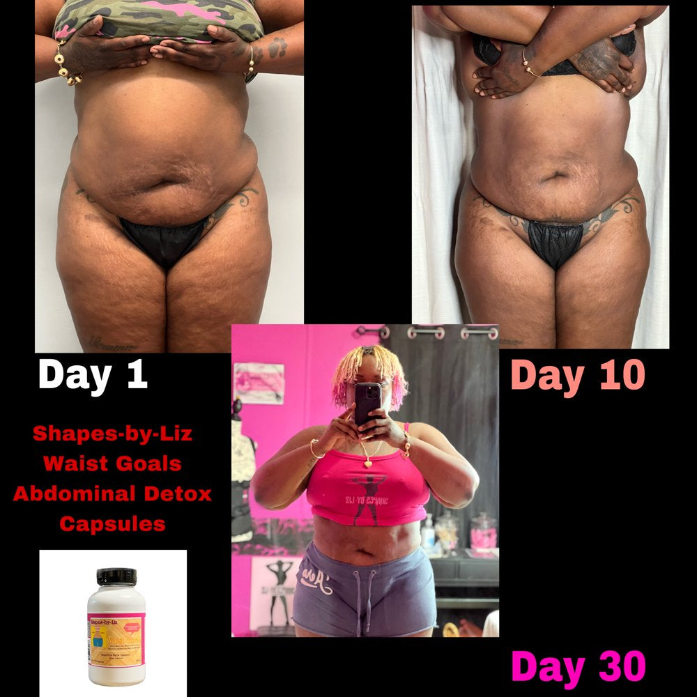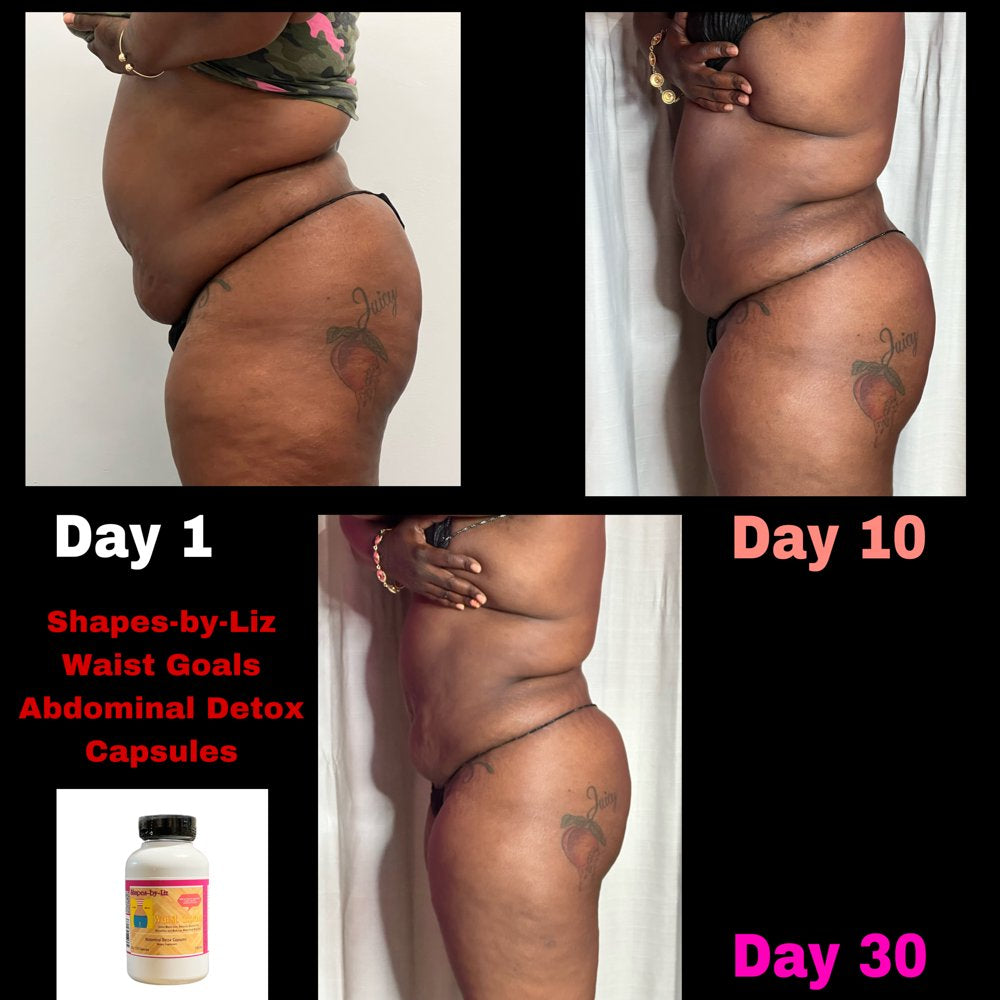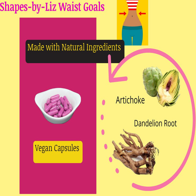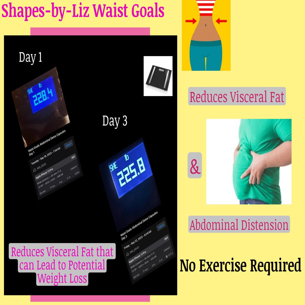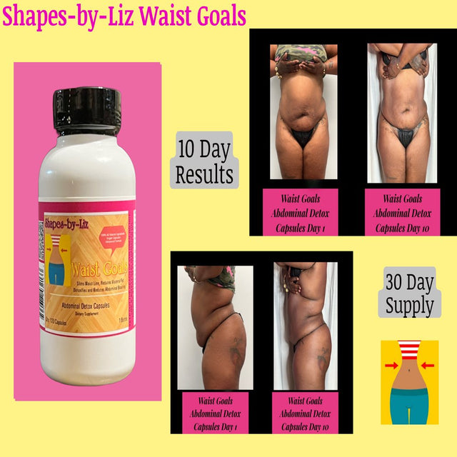 Shapes-by-Liz Waist Goals Abdominal Detox Capsules are a powerful blend of natural herbal ingredients Artichoke, Dandelion Root etc.....that has been formulated to help you achieve your desired waistline. These capsules work to reduce visceral fat, eliminate toxins from your abdomen, and slim down your waistline for both Women & Men. With consistent use of these dietary supplements, you can achieve the flat stomach and toned midsection that you've always wanted within a few weeks. Key Features: -Helps slim the waistline & Flatten the Abdomen - Reduces Visceral Fat -Eliminates abdominal toxins and Reduces Abdominal Distension ( Swollen / Enlarged Stomach ) - No surgery, No pain, No downtime, Just Waist Goals - Noticeable Results Can Be Seen within 10 - 30 Days, No Exercise Required, Individual Results May Vary - Natural blend of herbal ingredients, Water Soluble Vegan Capsules These capsules are perfect for those looking for a safe and natural way to achieve their fitness goals. The unique blend of herbs helps promote a healthy lifestyle while also reducing Abdominal Visceral Fat and Distension ( Swollen Stomach) Say goodbye to stubborn belly fat with Shapes-by-Liz Waist Goals Abdominal Detox Capsules as you Incorporate these supplements into your daily routine for the best results. Try them today and see the difference they can make in helping you reach your Waist Goals !