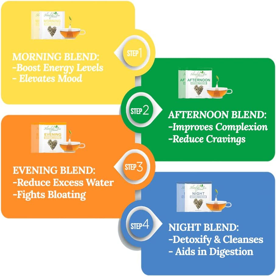 - TIMING IS EVERYTHING - Drinking the right tea at the right time is the key to getting the best results. We make that easy. Simply enjoy each tea at its designated time throughout the day. Each blend brings its own powerful benefits.