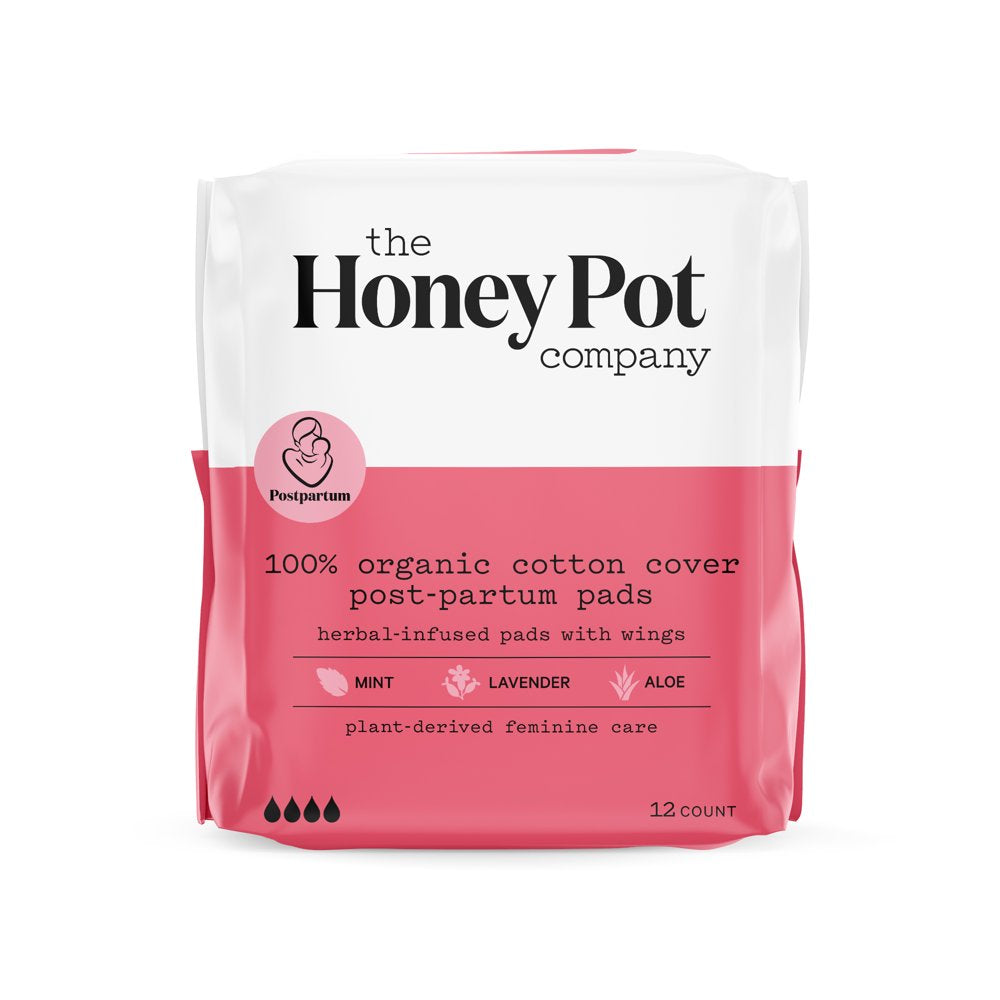 - The Honey Pot Company, Herbal Post-Partum Pads with Wings, Organic Cotton Cover, 12 ct.