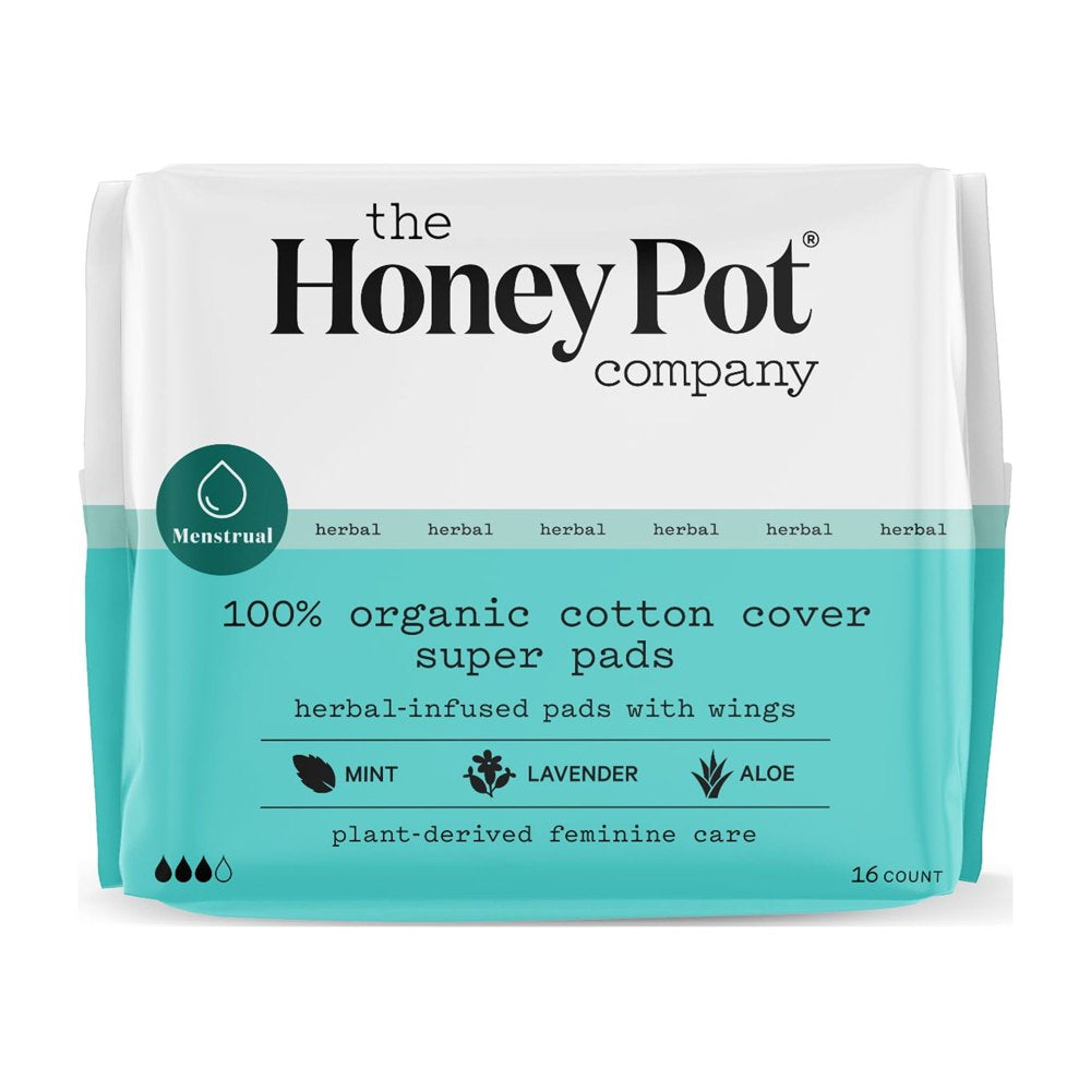 - The Honey Pot Company, Herbal Super Pads with Wings, Organic Cotton Cover, 16 ct.
