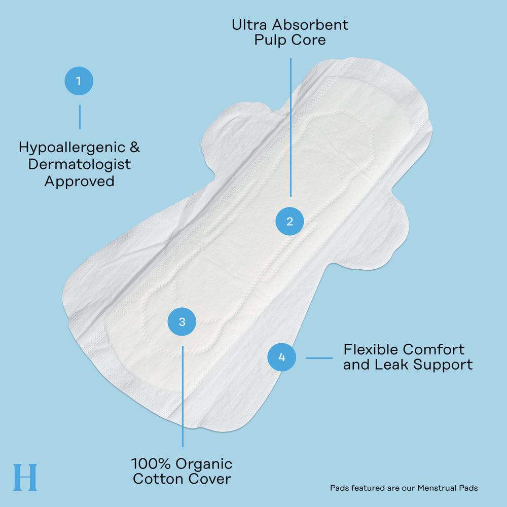 - Our pads are made to ensure maximum comfort and minimal leakage