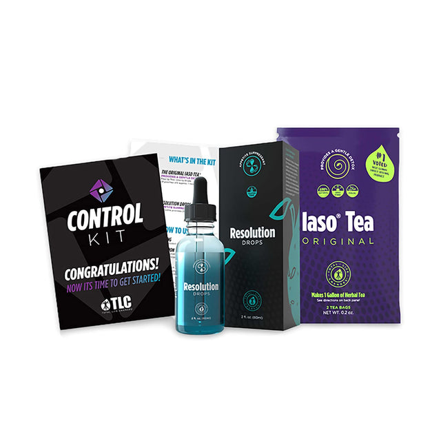 Total Life Changes Control Kit, IASO Natural Herbal Detox Tea Bags (5 Packs-2 Each) & Resolution Drops for Cut Cravings & Lose Weight