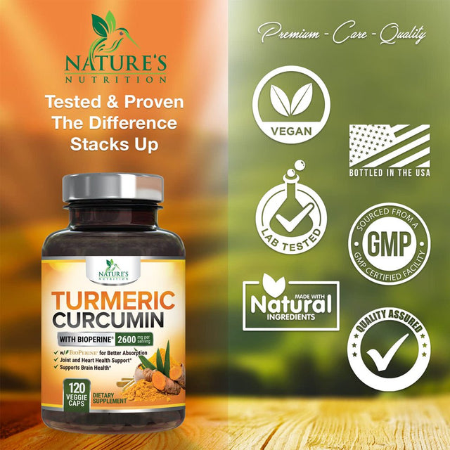 | Product Name | Turmeric Curcumin with BioPerine 95% Standardized Curcuminoids 2600mg - Black Pepper for Max Absorption, Vegan Joint Support, Nature's Tumeric Extract, Herbal Supplement, Non-GMO - 120 Capsules |