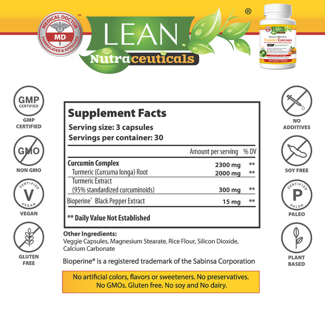 Turmeric Curcumin is the only product available that has been scientifically formulated to deliver. Formulated exclusively for Lean Nutraceuticals, each and every capsule delivers a synergistic fusion of natural antioxidants and anti-inflammatories.