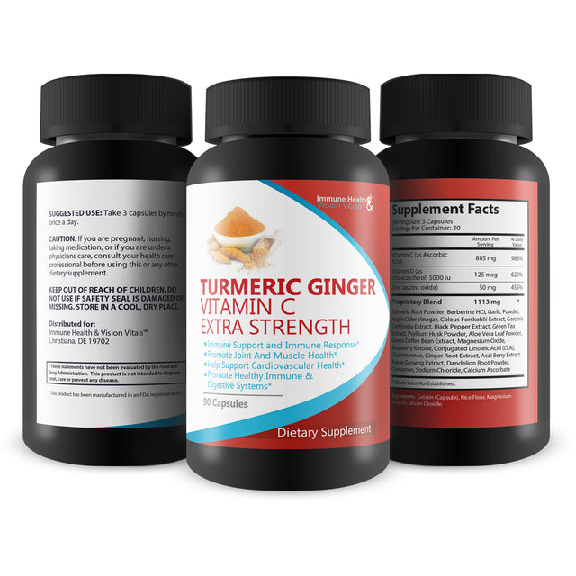 Turmeric Ginger & Vitamin C - Premium Blend - 2048 MG with Black Pepper Piperine for Best Absorption over 850 MG of Vitamin C - over 1100 MG Turmeric Based Herbal Blend - Ginger Turmeric Berberine is backordered and will ship as soon as it is back in stock.