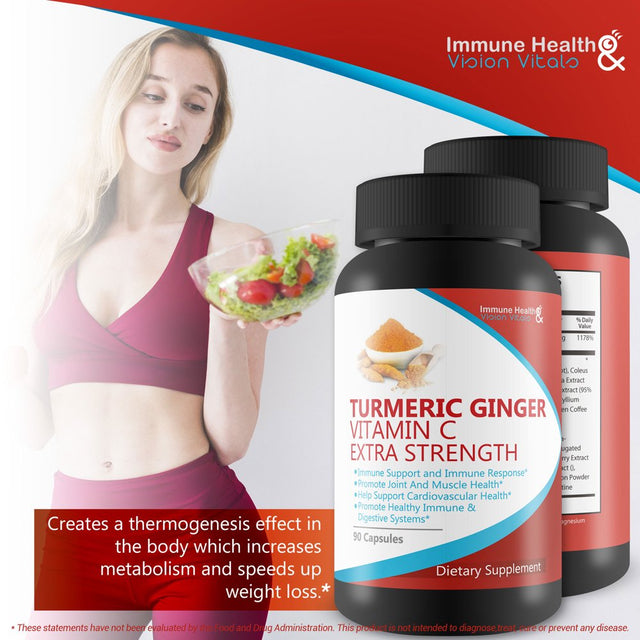 Turmeric Ginger & Vitamin C - Best Blend - 2048 MG With Black Pepper Piperine For Best Absorption Over 850 MG Of Vitamin C - Over 1100 MG Turmeric Based Herbal Blend - Ginger Turmeric
