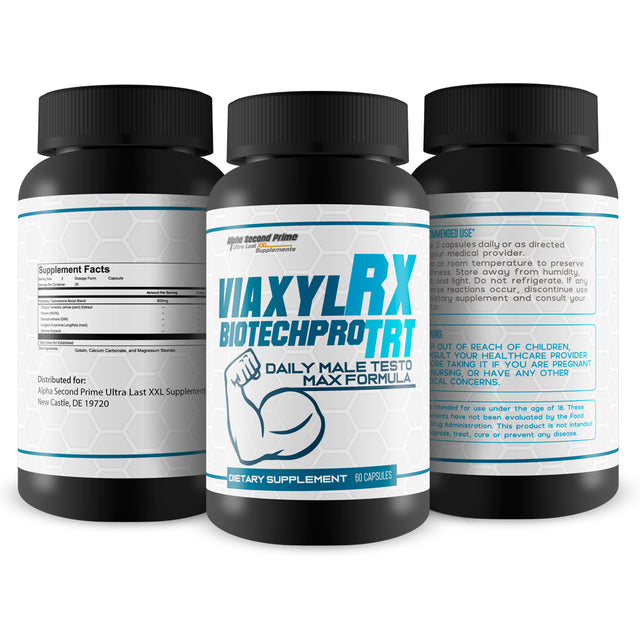 Viaxyl Rx BiotechPro Trt - Natural Testosterone Booster for Men and Women - Daily Male Testo Max Formula - Our Biotech Pro Pills are Herbally Formulated to Support the Production and Release of Natural Testosterone - Feel Youth, Power, and Energy