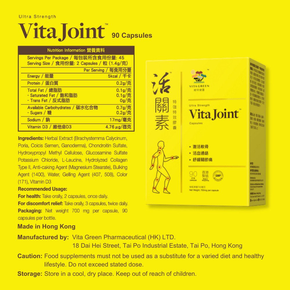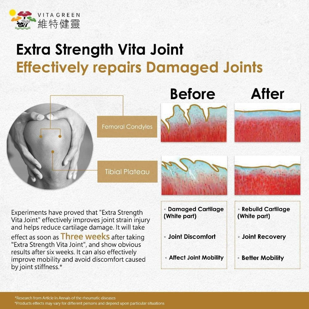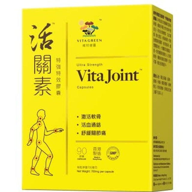 Extra Strength Vita Joint Provides natural relief from joint discomfort and stiffness. It alleviates symptoms including discomfort, stiffness, numbness, and weakness, helping you increase joint mobility and flexibility and rejuvenating degenerated tissue. Also, it is especially suitable for joint discomfort in the neck, shoulders, waist, fingers, hips, elbows, knees and ankles. It is also beneficial for sports injuries, old age-related joint conditions, male hip complaints and women with knee problems.
