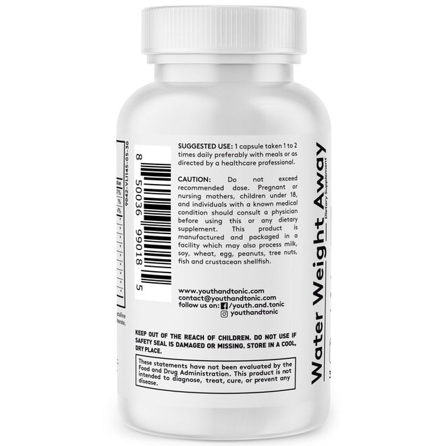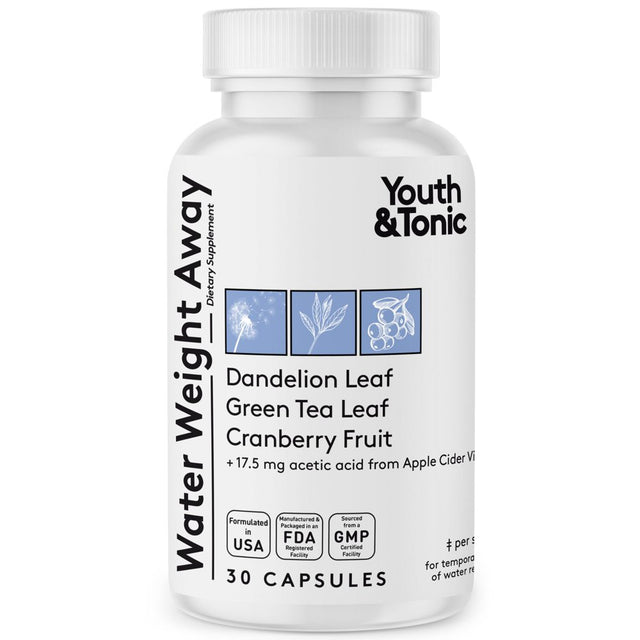 Youth & Tonic Water Weight Away Pills for Bloating, Herbal Diuretic Detox Supplement with Dandelion Leaf