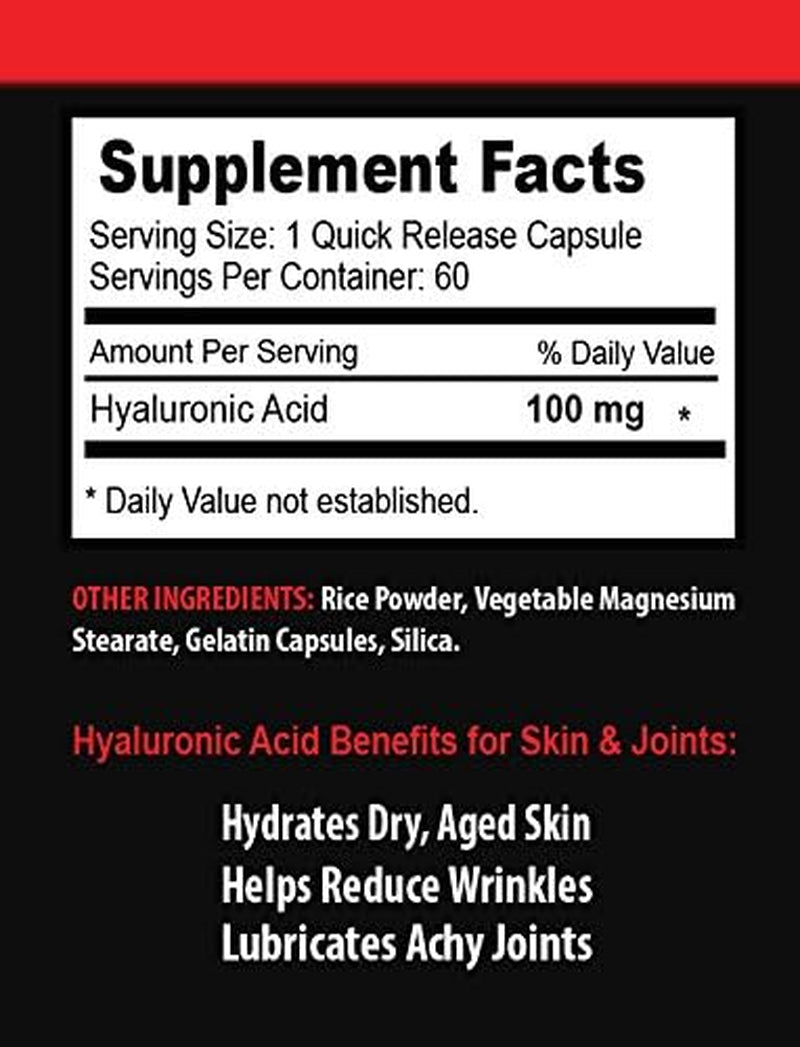 Anti Wrinkle Supplement - HYALURONIC Acid 100 Mg - Hyaluronic Acid Extra Strength - 1 Bottle 60 Capsules