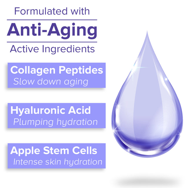 - Unique Anti Aging, Hydrating Formula: Supercharged with Hyaluronic Acid, Apple Fruit Stem Cells and Collagen Peptides to target deep lines and wrinkles with more power and help delay new ones. Unlike other ordinary products.